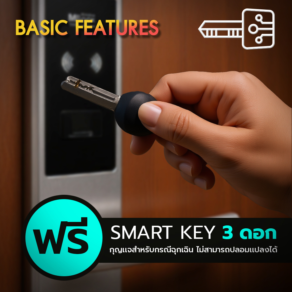 กุญแจฉุกเฉิน (Mechanical Key): มี SMART KEY 3 ดอก แถมให้ฟรี เป็นกุญแจสำหรับกรณีฉุกเฉิน และไม่สามารถปลอมแปลงได้