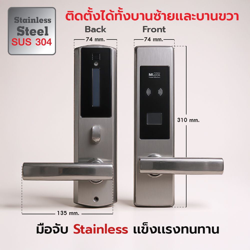 วัสดุ (Material): มือจับเป็น Stainless Steel SUS 304 แข็งแรงทนทาน